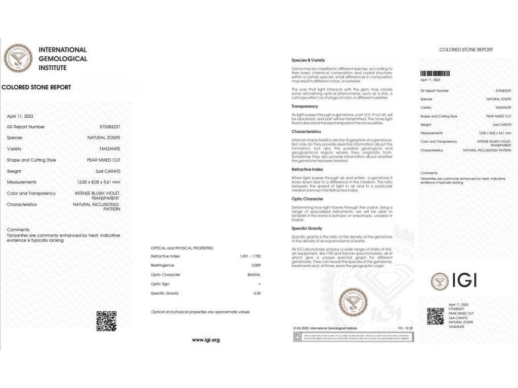 Tanzanit 3.64 ct | certifikát IGI